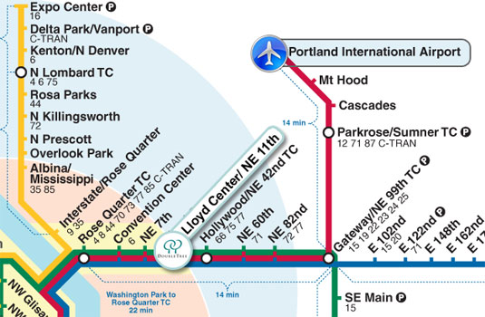 - TriMet's MAX Light Rail:From any Downtown Portland MAX station, board the MAX Red line to Airport to the Lloyd Center/NE 11th Avenue MAX station.